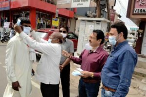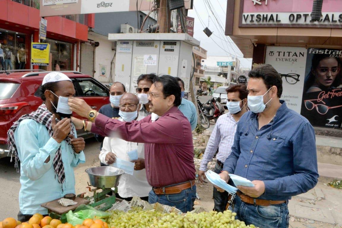 कोविड अभियान के तहत मास्क भी वितरित किए जा रहे हैं। उन्होंने कहा कि कोरोना का खतरा अभी टला नहीं है। ऐसे में सरकार के दिशा निर्देशों का पालन करते हुए स्वयं व दूसरों को भी कोरोना से बचाने में सभी को सहयोग करना चाहिए। कोरोना के बचाव के लिए उचित दूरी का पालन करें। हाथों को बार बार साबुन या सेनेटाईजर से साफ करें। मास्क पहने व दूसरों को भी मास्क पहनने के लिए प्रेरित करें। विशाल गर्ग ने कहा कि देश के प्रधानमंत्री नरेंद्र मोदी कोरोना संक्रमण के प्रति आमजन से बार बार सुरक्षा की अपील कर रहे हैं। हमारा भी दायित्व बनता है कि कोरोना संक्रमण की रोकथाम को लेकर अपनी सहभागिता निभाएं। भीड़भाड़ वाले क्षेत्रों में जाने से बचें। रामबाबू बंसल व सिद्धार्थ कौशिक ने कहा कि कोरोना देशवासियों के लिए बड़ा खतरा बनता जा रहा है। अपने खानपान पर विशेषतौर पर ध्यान देने की आवश्यकता है। शारीरिक क्षमताओं को बढ़ाए जाने की जरूरत है। उन्होंने कहा कि सरकार का सहयोग सभी को करना होगा। उचित दूरी व मास्क का प्रयोग करें। अपने परिवारों को भी कोरोना के खतरे के प्रति सचेत करें। तभी देश कोरोना मुक्त बनेगा।
