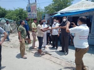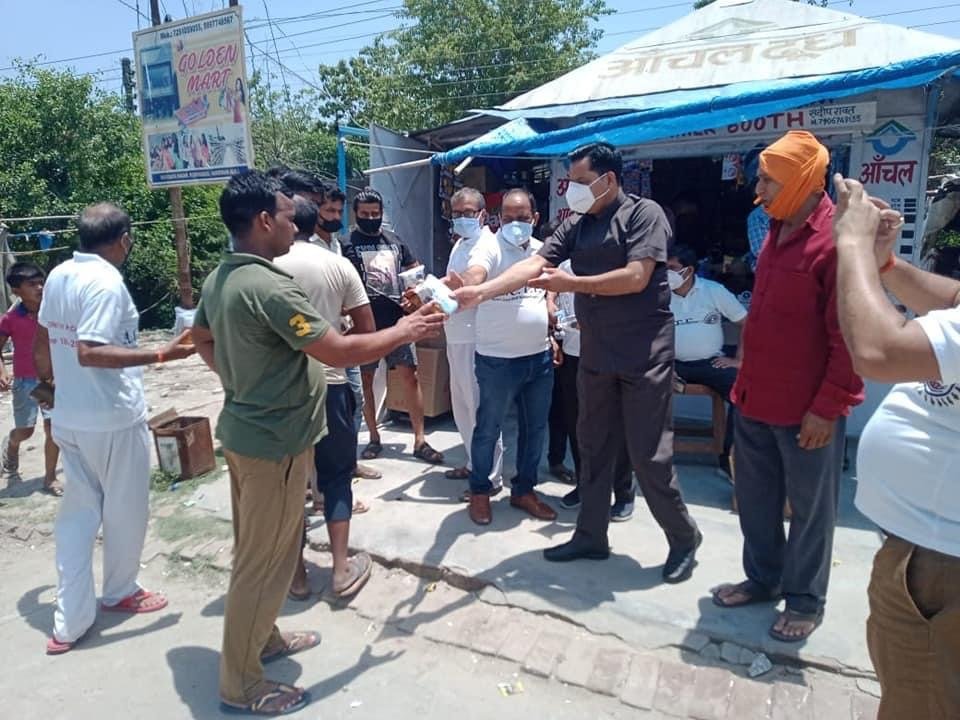 हरिद्वार। एंटी कोरोना टास्क फ़ोर्स प्रदेश अध्यक्ष जटाशंकर श्रीवास्तव के नेतृत्व में रानीपुर विधानसभा क्षेत्र के अंतर्गत जरूरतमंद एवं गरीबों को सेनीटाइजर मास्क हैंड वास आदि सामग्री का सेफ्टी किट तथा खाने का सामान जैसे कि फ्रूटी बिस्कुट आदि गरीबों को बांटा गया।