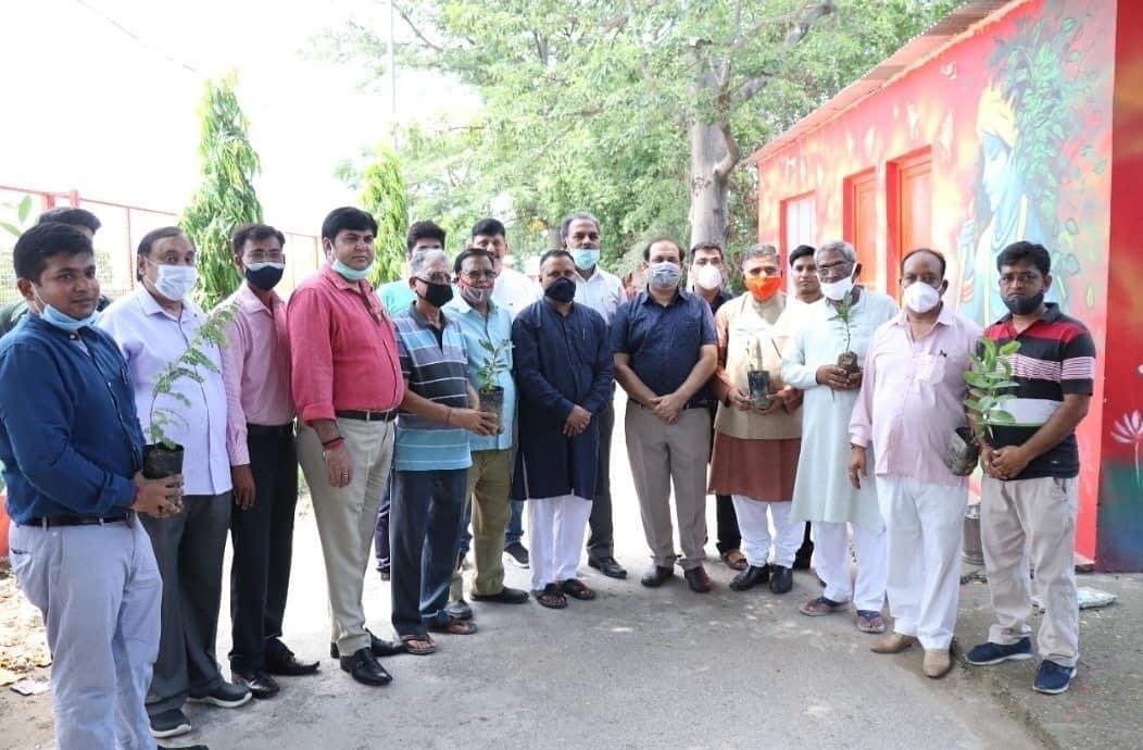 पतंजलि से रत्नेश गौतम, भास्कर औली ने औषधीय पौधों की उपयोगिता बताते हुए नीम और गिलोय के पौधे वितरित किए।