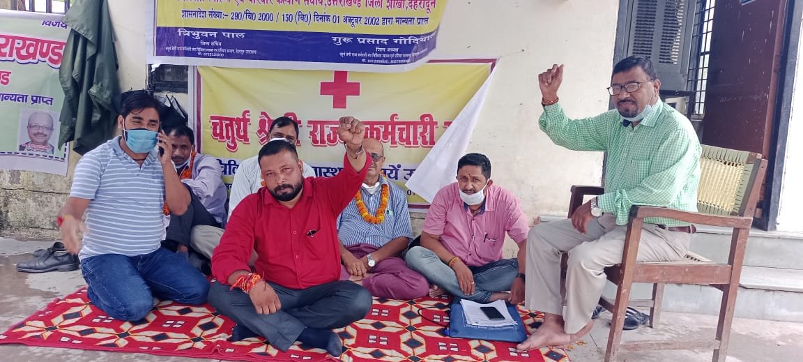 देहरादून। चतुर्थ श्रेणी राज्य कर्मचारी संघ चिकित्सा स्वास्थ्य सेवाएं उत्तराखंड के पूर्वघोषित आंदोलन कार्यक्रम में क्रमिक अनशन के तीसरे दिन में नेलसन अरोड़ा, सियाराम निषाद, अनिल कुमार, गुरुप्रसाद गोदियाल, दीपक धवन, शिवनारायण सिंह बैठे। उन्होंने चेतावनी दी कि इस बार कर्मचारी आर—पार की लड़ाई के मूंड में हैं, जब तक उनकी मांगे पूरी नहीं होगी वे आंदोलन करते रहेंगे।