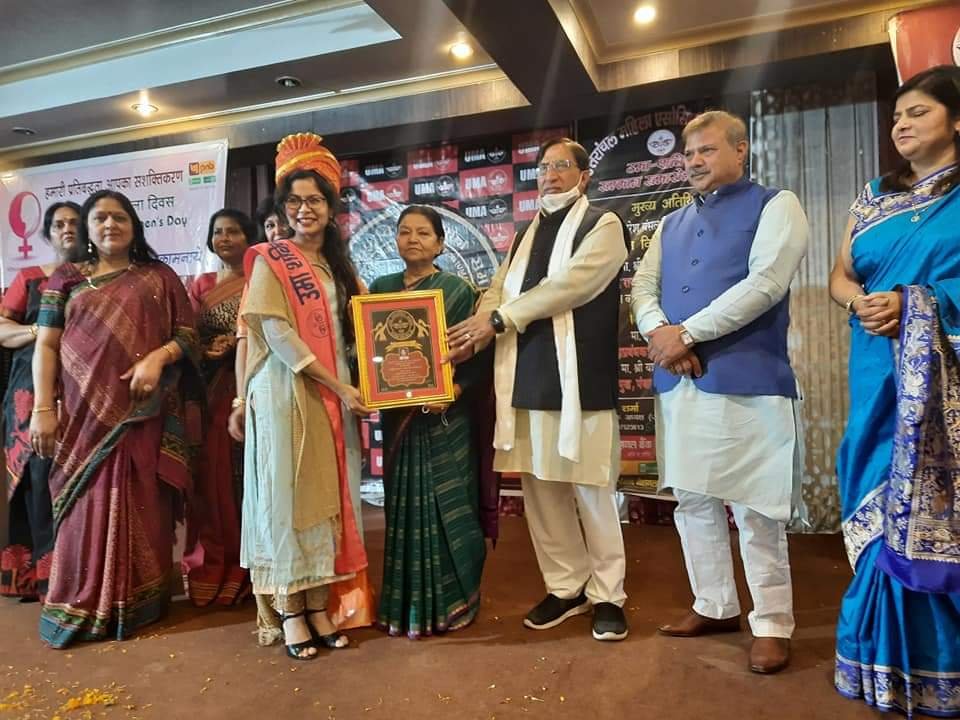 हरिद्वार। अंतरराष्ट्रीय महिला दिवस 2021 के उपलक्ष्य में उत्तरांचल महिला एसोसिएशन (उमा) के द्वारा 19 वां उमा शक्ति समारोह का आयोजन देहरादून में किया गया। जिसमें मुख्य अतिथि नरेश बंसल (सांसद राज्य सभा) के द्वारा उत्तराखंड में कार्यरत समाज के प्रति अपना विशेष योगदान देने वाली महिलाओं का सम्मान किया गया, जिसमें हरिद्वार की कोविड़-19 नोडल ऑफिसर डॉ निशात अंजुम को चिकित्सा क्षेत्र में व कोविड़ में कार्य करने के लिए महिला एशोसिएशन द्वारा स्मृति चिन्ह देकर सम्मानित किया गया। डॉ अंजुम वर्तमान में राजकीय मेला चिकित्सालय हरिद्वार में कोविड़-19 नोडल ऑफिसर व माईक्रोबायोलोजिस्ट के पद पर कार्येरत है। आपको बता दे कि सम्मान प्राप्त करने वालो में डॉ अंजुम पहली ऐसी महिला है जो कि सबसे कम उम्र की थी। इससे पहले भी डॉ अंजुम को चिकित्सा क्षेत्र में कई अन्य सम्मान से सम्मानित किया जा चुका है। इस कार्यक्रम को पंजाब नेशनल बैंक देहरादून द्वारा सम्पन्न कराया गया। डॉ अंजुम ने बताया कि उन्होंने अपना जीवन समाज के प्रति समर्पित किया है और वह निस्वार्थ भाव से रात दिन कोविड़ के मरीजो की सेवा में तत्पर है कोविड़ में ड्यूटी के दौरान पिछले 1वर्ष से वह अपने घर भी नही जा पाई है उन्होंने इस सम्मान के लिए उत्तरांचल महिला असोसिएशन को धन्यवाद देते हुए उनका आभार प्रकट किया। राजकीय मेला चिकित्सालय हरिद्वार के चिकित्सा अधीक्षक डॉ राजेश गुप्ता ने इस सम्मान के लिए डॉ निशात अंजुम को बधाई देते हुए उनकी सराहना की। उन्होंने कहा कि उन्हें डॉ अंजुम पर गर्व है कि वह उनके चिकित्सालय में कार्यरत है।