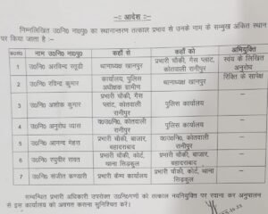 हरिद्वार। पथरी थानाध्यक्ष रहे रविंद्र कुमार को फिर से बड़ी जिम्मेदारी सौंपते हुए खानपुर थाना प्रभारी बनाया गया है। जबकि खानपुर थानाध्यक्ष अरविंद रतूडी को फिर से गैस प्लॉट चौकी प्रभारी बनाया गया है। जबकि गैस प्लांट चौकी प्रभारी अशोक कुमार को पुलिस कार्यालय भेज दिया है। रानीपुर कोतवाली में एसएसआई के पद पर आनंद मेहरा को जिम्मेदारी मिली हैं, जबकि रघुवीर रावत को बहादराबाद बाजार चौकी प्रभारी प्रभारी बनाया है।