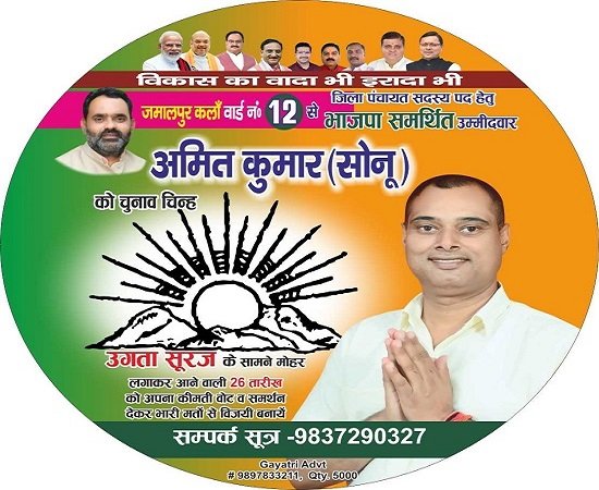 मंगलवार को निर्वाचन आयोग ने सभी प्रत्याशियों को चुनाव चिन्ह आवंटित कर दिए हैं। चुनाव चिन्ह आवंटित होते ही प्रचार प्रसार में तेजी आ गई है। भाजपा प्रत्याशी अमित चौहान को चुनाव चिन्ह उगता सूरज मिला है। अमित चौहान ने समर्थकों के साथ जमालपुर, अजीतपुर, मिस्सरपुर, श्यामपुर, गाजीवाली, चंडीघाट आदि ग्रामों के साथ कॉलोनियों में प्रचार प्रसार तेज कर दिया है। उन्होंने कहा कि क्षेत्र में समुचित विकास होगा। सभी क्षेत्रों का एक समान विकास होगा। सड़कें, बिजली, पानी, शिक्षा, स्वास्थ्य के लिए काम होगा। उन्होंने कहा कि मुख्यमंत्री पुष्कर सिंह धामी के विजन को आगे बढ़ाने के लिए जिला पंचायत का बोर्ड भाजपा का होना जरूरी हैं।