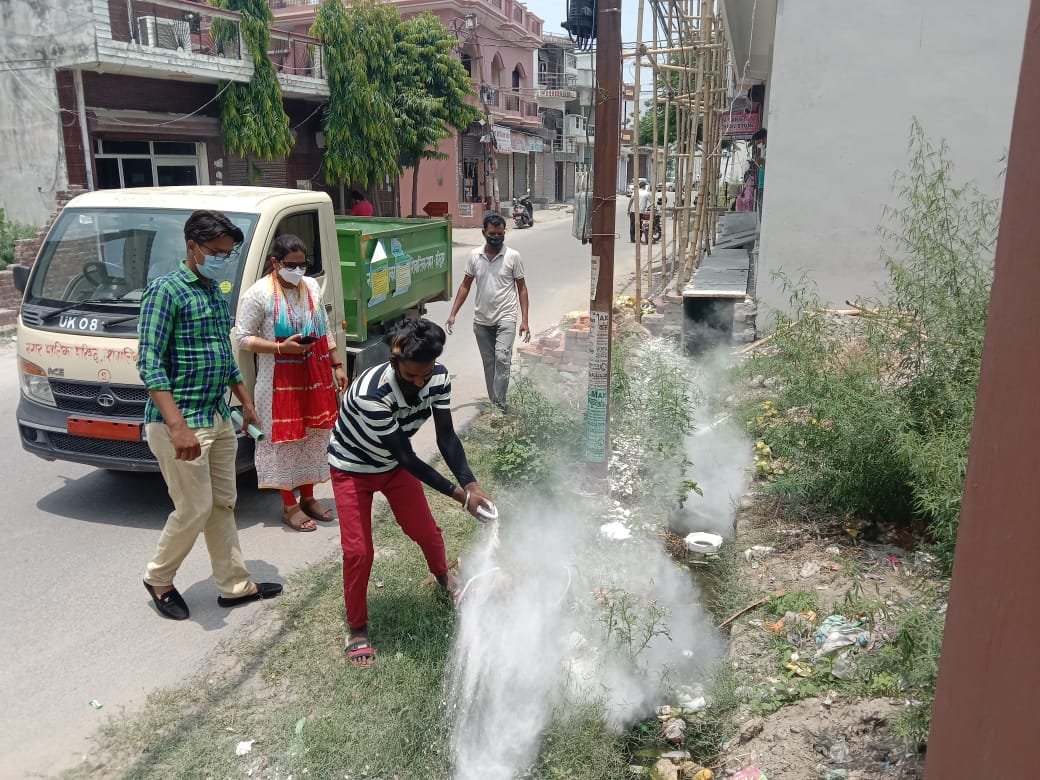 हरिद्वार। शिवालिकनगर नगर पालिका परिषद के अध्यक्ष राजीव शर्मा के दिशा निर्देश पर नगर पालिका कर्मचारियों द्वारा क्षेत्र में सभासद रीना तोमर के नेतृत्व में डेंगू की रोकथाम के लिए कीटनाशक दवाई का छिड़काव व डेंगू के प्रति जन जागरूकता अभियान चलाया गया।