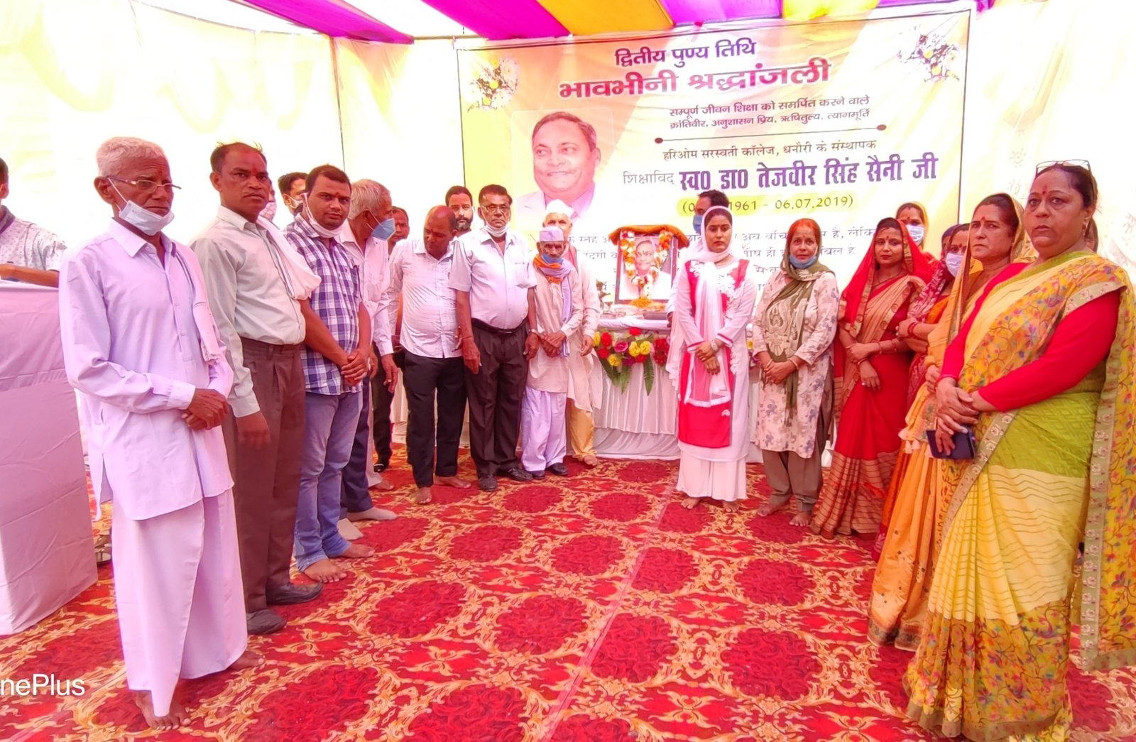 धनौरी। हरिओम सरस्वती कालेज सहित विभिन्न शैक्षणिक संस्थाओं के संस्थापक शिक्षाविद् स्व0 डॉ तेजवीर सिंह सैनी की द्वितीय पुण्यतिथि पर आयोजित श्रद्धांजलि सभा में क्षेत्रवासियो, शिक्षको, अधिकारीगणों ने अपनी श्रद्धांजलि अर्पित थी।