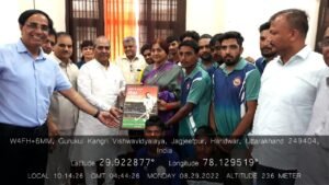 गुरूकुल कांगड़ी विवि में हॉकी के जादूगर मेजर ध्यानचंद के जन्मदिवस पर उन्हें श्रद्धांजलि देते हुए खेल दिवस पर हॉकी मैच का आयोजन किया। सभी ने मेजर ध्यानचंद के चित्र पर पुष्प अर्पित करते हुए उन्हें स्मरण किया। कुलपति प्रो रूपकिशोर शास्त्री ने सभी खिलाड़ियों से परिचय करते हुए खेल दिवस की बधाई दी। उन्होंने कहा कि सभी खिलाड़ियों को अपने जीवन का लक्ष्य निधारित करना चाहिए एवं कठिन परिश्रम एवं इमानदारी से मेंहनत करते हुए उस लक्ष्य को हासिल करना चाहिए उन्होंने भारत के खिलाड़ियों की प्रसंशा करते हुए बच्चों हरिद्वार की वंदना कटारिया का उदाहरण दिया।