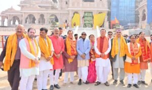 मुख्यमंत्री पुष्कर सिंह धामी मंत्रिमंडल में अपने सहयोगियों सतपाल महाराज, प्रेमचंद अग्रवाल, सुबोध उनियाल, डॉ धन सिंह रावत, रेखा आर्य एवं राज्यसभा सांसद नरेश बंसल के साथ जॉलीग्रांट एयरपोर्ट पहुंचे, जहां से वे श्री अयोध्या धाम के लिए रवाना हुए। अयोध्या में महर्षि वाल्मीकि अंतरराष्ट्रीय हवाई अड्डा में पहुंचे पर मुख्यमंत्री श्री धामी और उनके सहयोगियों का भव्य स्वागत हुआ। इस दौरान पूरा परिसर जय श्रीराम के नारों से गूंज उठा। यहां से वह राम जन्मभूमि के लिए रवाना हुए। मुख्यमंत्री एवं उनके सहयोगी श्री अयोध्या धाम में प्रभु राम को साष्टांग नमन कर पूजा अर्चना की। दर्शन करने के बाद मुख्यमंत्री पुष्कर सिंह धामी भावुक हो गए। मुख्यमंत्री ने कहा कि श्री रामलला के दर्शन से रोम-रोम भक्तिमय और मन प्रफुल्लित है। उन्होंने कहा कि रामलला को कई वर्षों तक टेंट में रहना पड़ा। आज भव्य मंदिर में रामलाला के दर्शन किए। मैं भाव विह्वल हूं और प्रभु श्रीराम के चरणों में समर्पित हूं।