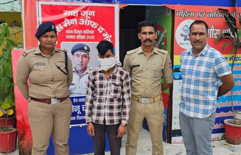 थाना कलियर पर शिकायतकर्ता द्वारा नीटू के विरुद्ध अपनी नाबालिग भांजी से जबरदस्ती शारीरिक सम्बन्ध बनाने व जान से मारने की धमकी देने के संबंध में मुकदमा पंजीकृत कराया गया। मामले की गंभीरता को देखते हुए एसएसपी हरिद्वार के निर्देश पर थाना कलियर पुलिस ने इलेक्ट्रॉनिक साक्ष्यों व सुरागरसी के आधार पर दबिश देकर आरोपी को 24 घंटे के भीतर हज हाउस पिरान कलियर से हिरासत में लिया।