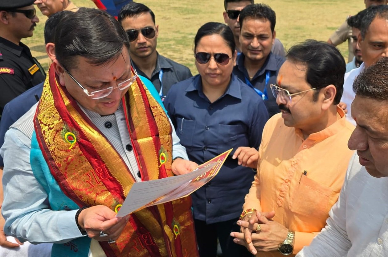 मुख्यमंत्री पुष्कर सिंह धामी को मुख्यमंत्री पुष्कर सिंह धामी के लिए आमंत्रण देते हुए समाजसेवी डॉ विशाल गर्ग
