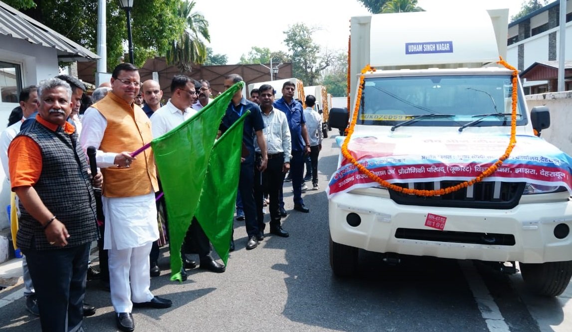 देहरादून। मुख्यमंत्री पुष्कर सिंह धामी द्वारा प्रदेश के सरकारी विद्यालयों में पढ रहे छात्र-छात्रओं को लैब ऑन व्हील्स के माध्यम से 9 मोबाईल सांइस लैब की सौगात दी गई। मुख्यमंत्री ने कैम्प कार्यालय परिसर में मोबाईल सांइस लैब के विज्ञान माॅडलों का अवलोकन किया और 09 मोबाईल सांइस लैब को हरी झण्डी दिखा कर रवाना किया। पिछले वर्ष भी मुख्यमंत्री ने राज्य के चार जिलों चम्पावत, अल्मोड़ा, देहरादून एवं पौड़ी के लिए मोबाईल सांइस लैब को हरी झण्डी दिखा कर रवाना किया था।
