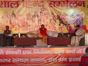 राष्ट्रीय स्वयंसेवक संघ शताब्दी वर्ष कार्यक्रमों की श्रंखला में अनुराग पैलेस में आयोजित दक्षिण हरिद्वार के ज्वालापुर की आर्यनगर बस्ती के हिंदू सम्मेलन की अध्यक्षता करते हुए जगतगुरु शंकराचार्य स्वामी राजराजेश्वराश्रम महाराज ने कहा कि हिन्दू सोया हुआ है, निरन्तर हिंदुओ की संख्या घट रही है। इसके लिए कोई और दोषी नही बल्कि हमारी पीढ़ी-लिखी पढ़ी है। जहां दूसरे धर्मो में बच्चों को कुदरत की देन कहा जाता है, वही सनातन धर्म को मानने वाले अधिक बच्चों की परवरिश की चिंता में निसंतान होते जा रहे है। उन्हीने कहा कि दूसरे धर्मों के बुजुर्ग अपने बच्चों को डरा कर रखते है लेकिन हिंदुओ में बच्चे बुजुर्गों पर हावी है। परिवारों में एक-दो बच्चे होने का नाजायज लाभ आज के बच्चे ले रहे है। उन्होंने कहा कि यदि हिन्दू धर्म परम्पराओं को जीवित रखना है तो अपने परिवार को बढ़ाने पर ध्यान दें। सनातन धर्म मे कण-कण में भगवान सनातन धर्म के लिए सबसे कलंकित बात है जहां वृद्ध आश्रम खोले जा रहे है। मुख्य वक्ता आरएसएस के क्षेत्र सह सम्पर्क प्रमुख डॉ. हरीश ने संघ के 100 वर्षों की यात्रा पर प्रकाश डाला।