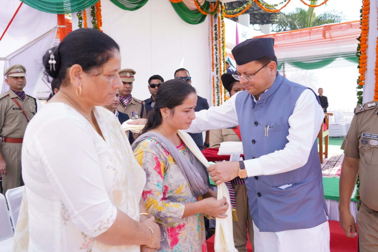 देहरादून। मुख्यमंत्री पुष्कर सिंह धामी ने पुलिस लाईन, देहरादून में पुलिस स्मृति दिवस के अवसर पर शहीद स्मारक पर पुलिस एवं अर्द्ध सैन्य बलों के शहीदों को पुष्प चक्र अर्पित कर श्रद्धांजलि अर्पित की तथा उत्तराखण्ड के शहीद पुलिस जवानों के परिजनों को सम्मानित भी किया।