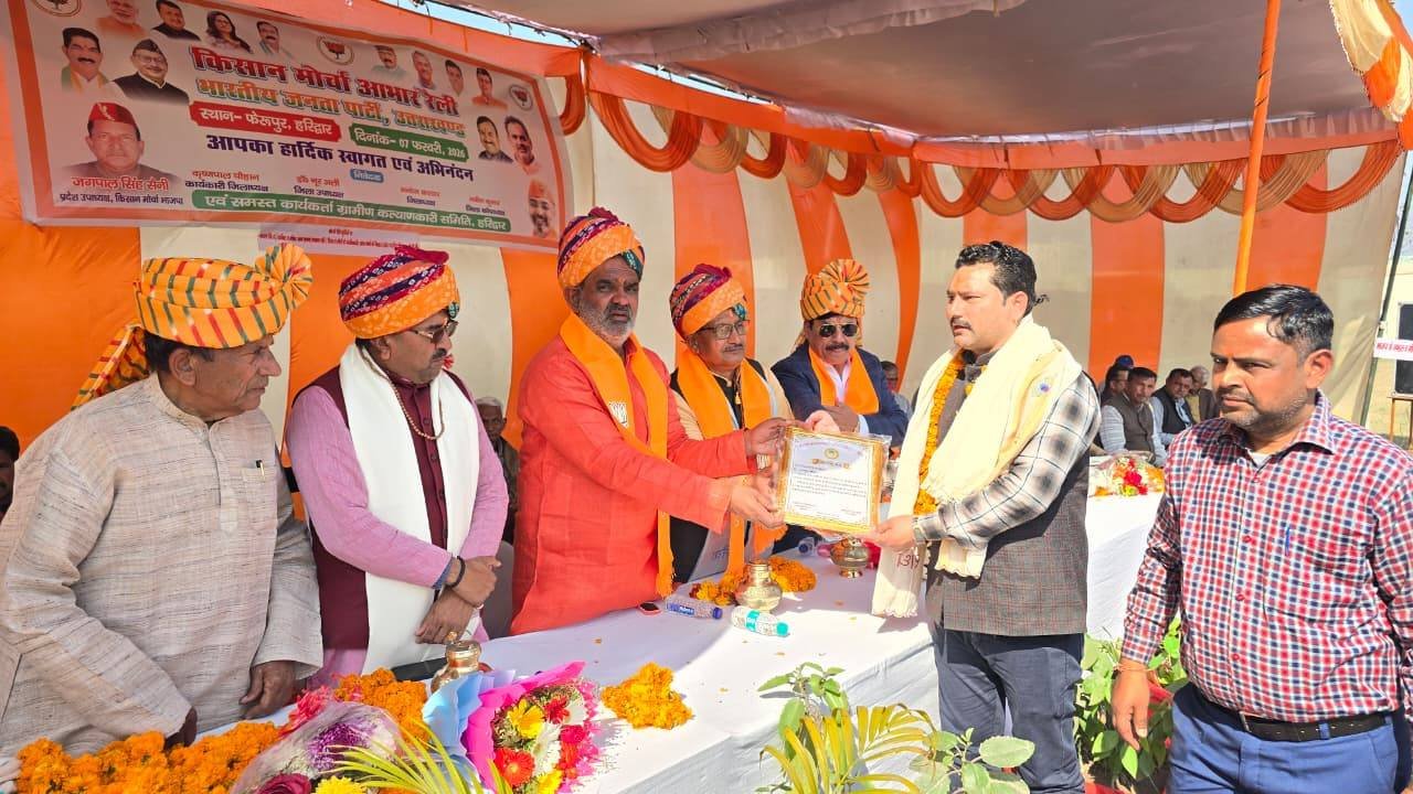 शनिवार को फेरुपुर में प्रदेश उपाध्यक्ष किसान मोर्चा भाजपा जगपाल सैनी द्वारा आयोजित किसान मोर्चा आभार सभा में बतौर मुख्य अतिथि प्रदेश उपाध्यक्ष एवं पूर्व कैबिनेट मंत्री स्वामी यतीश्वरानंद ने केंद्र और राज्य की धामी सरकार द्वारा किसानों के हित में किए गए कार्यों एवं योजनाओं की जानकारी दी। उन्होंने कहा कि मुख्यमंत्री पुष्कर सिंह धामी ने प्रदेश में गन्ने का भाव 405 रुपये प्रति क्विंटल, केंद्र ने प्रधानमंत्री किसान सम्मान निधि से साल में 6000 रुपये देकर, कीटनाशकों एवं उर्वरक, बीजों के साथ उपकरणों पर सब्सिडी देकर किसानों को मजबूत किया है। उन्होंने कहा कि ग्रामीणों को स्वामित्व योजना के तहत घर की भूमि का अधिकार दिया है। उन्होंने कहा कि भाजपा का किसान मोर्चा संगठन किसानों के हित में खड़ा है।