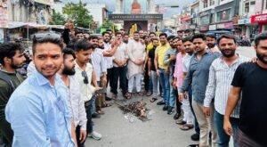 बुधवार को चंद्राचार्य चौक पर लोकसभा नेता प्रतिपक्ष राहुल गांधी का पुतला फूंकते हुए भाजयुमो के जिलाध्यक्ष विक्रम भुल्लर ने कहा कि कांग्रेस ने हमेशा तुष्टिकरण की राजनीति कर सत्ता हासिल की, लेकिन ये सत्ता से बाहर है तो देश की जनता को बांटने का काम कर रहे हैं। विक्रम भुल्लर ने कहा कि देश सनातनियों का है, जिन्हें यह स्वीकार नहीं है वे देश छोड़कर चले जाए। उन्होंने कहा कि आज देश में हर वर्ग की तरक्की हो रही है और आपस में मिल जुलकर भाईचारा निभाते हुए आजीविका निर्वहर कर रहे हैं, लेकिन विपक्षी दलों को यह रास नहीं आ रहा है। उन्होंने राहुल गांधी से इस्तीफा मांगते हुए कहा कि देश की जनता से माफी मांगों। जिला उपाध्यक्ष संदीप प्रधान, नवजोत वालिया ने कहा कि केंद्र सरकार को राहुल गांधी के विदेशी षड़यंत्रकारियों से संबंधों की भी जांच करनी चाहिए। राहुल गांधी ने करोड़ों हिंदुओं के प्रति टिप्पणी कर अपनी छोटी मानसिकता का परिचय दिया है। उन्होंने कहा कि देश विरोधी गतिविधियां हो या सनातन धर्म पर टिप्पणी, किसी भी सूरत में बर्दाश्त नहीं की जाएगी।