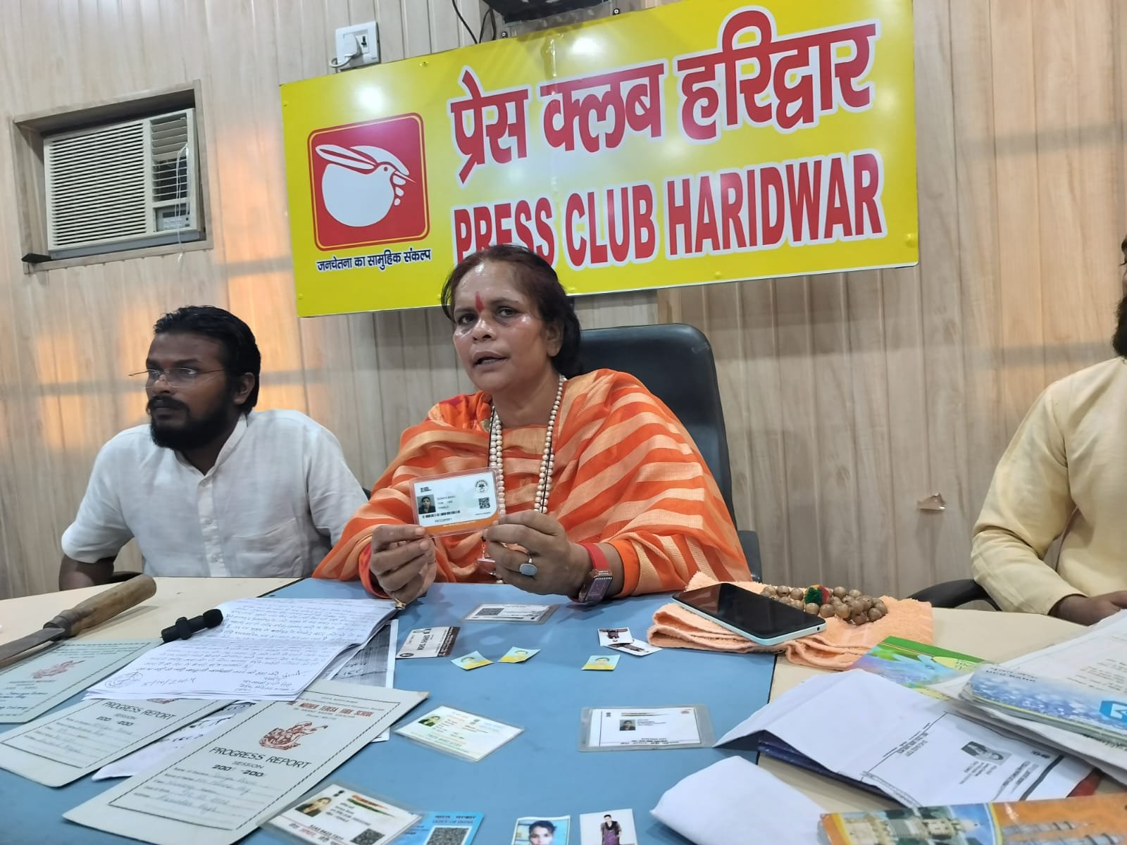 पुलिस की तलाशी में उसके पास से अलग अलग नामों के कई आधार कार्ड मिले। जिनमें उसका नाम सोनिया चौधरी, सोनिया बानो, प्रज्ञा शर्मा आदि नामों से आधार कार्ड बने हुए थे। उसकी तलाशी में मुस्लिम ग्रंथ, एक हथियार और दो मोबाइल फोन भी बरामद हुए है। पुलिस ने महिला को हिरासत में ले लिया है।