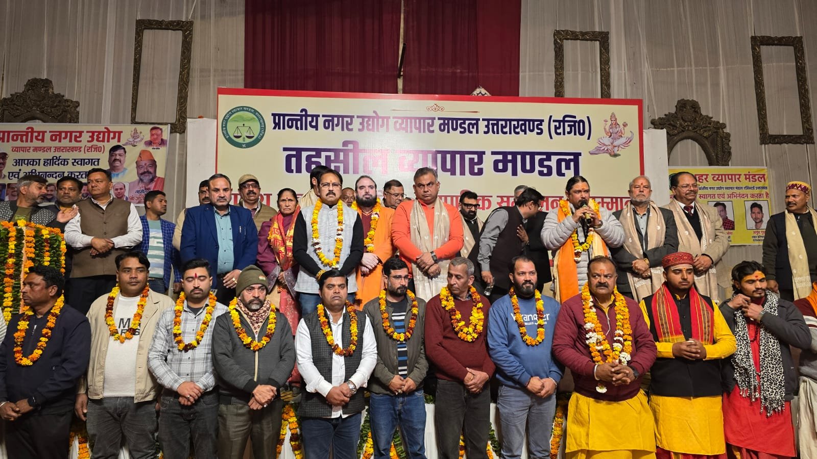 हरिद्वार। प्रांतीय नगर उद्योग व्यापार मंडल से संबद्ध तहसील व्यापार मंडल का शपथ ग्रहण समारोह एवं व्यापारिक सम्मेलन व सम्मान समारोह गौतम फार्म हाउस में भव्य रूप से आयोजित किया गया। कार्यक्रम में विशिष्ट अतिथी श्री गंगा सभा के अध्यक्ष नितिन गौतम ने नव निर्वाचित तहसील अध्यक्ष पंडित अधीर कौशिक, महामंत्री आदेश मारवाड़ी एवं सुमित चौधरी, कोषाध्यक्ष मनोज सिरोही, उपाध्यक्ष उदयराम सेमवाल, महेश सूर्यवंशी, भोला शर्मा, नितिन शर्मा, नितिन शर्मा एवं मनीष रस्तोगी, तहसील सचिव कपिल गिरी, संचित ग्रोवर, महादेव शंकर, तरुण जोशी, बलवीर रावत, विपिन शर्मा, मंगल सिंह, कमल खड़का एवं अमित शर्मा, प्रचार मंत्री अभिषेक गिरी, संयुक्त प्रचार मंत्री शिवकुमार राजपूत एवं राकेश कुमार को पद एवं गोपनीयता की शपथ दिलाई।
