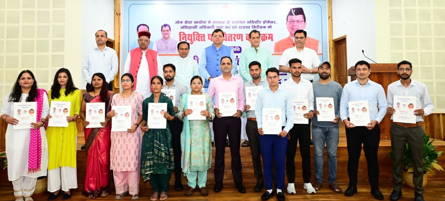 देहरादून। मुख्यमंत्री पुष्कर सिंह धामी ने सोमवार को मुख्यमंत्री आवास स्थित मुख्य सेवक सदन में आयोजित कार्यक्रम में उत्तराखण्ड लोक सेवा आयोग के माध्यम से उच्च शिक्षा विभाग में चयनित 68 असिस्टेंट प्रोफेसर, शहरी विकास विभाग में चयनित 63 अधिशासी अधिकारी एवं 22 कर व राजस्व निरीक्षकों को नियुक्ति पत्र प्रदान किए।