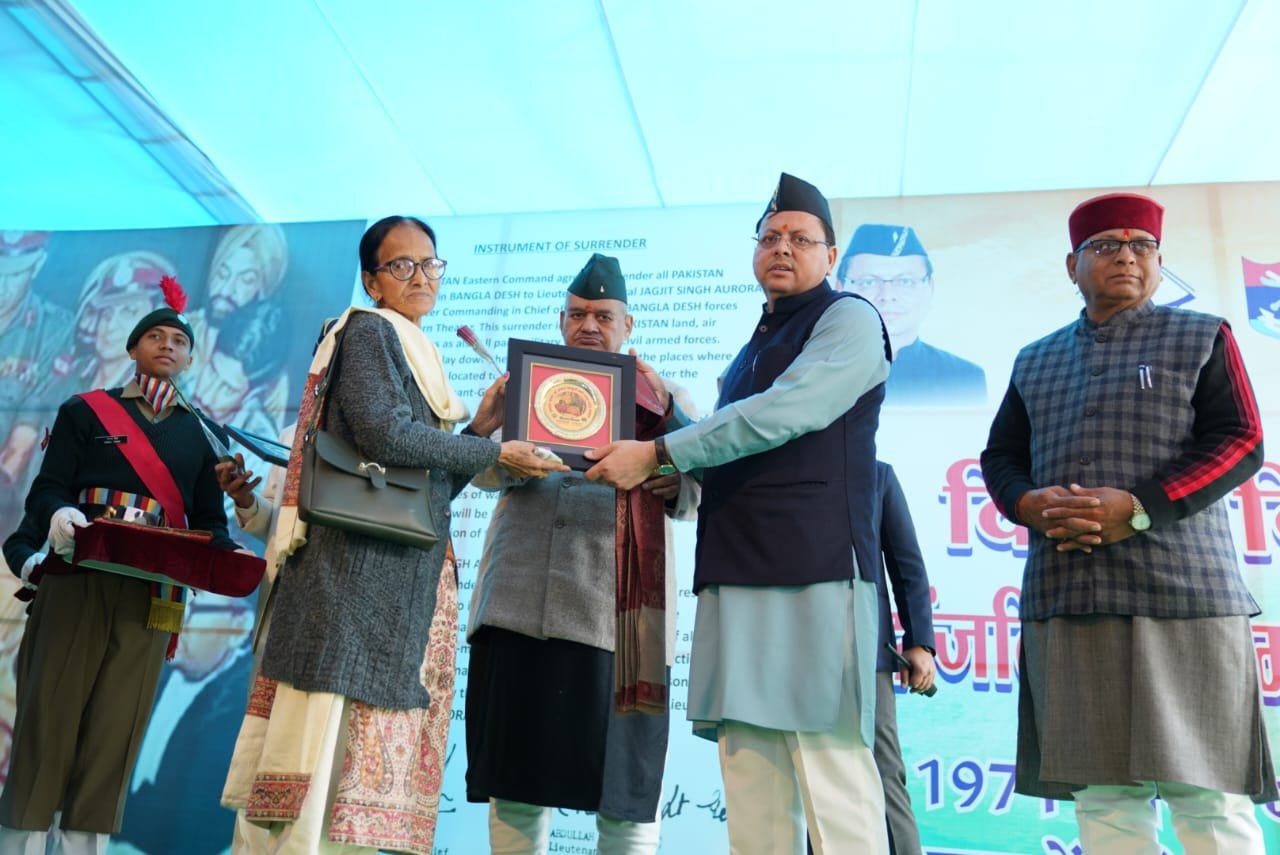 मुख्यमंत्री ने कहा कि आज का दिन भारतीय सेना के वीर जवानों के अदम्य साहस, शौर्य और पराक्रम का उत्सव मनाने का दिन है। 1971 का युद्ध अमानवीयता पर मानवता, दुराचार पर सदाचार और अन्याय पर न्याय की जीत का युद्ध था। आज ही के दिन वर्ष 1971 में पाकिस्तान के 93,000 से अधिक सैनिकों ने हमारे वीर बहादुर सैनिकों के समक्ष घुटने टेके थे। द्वितीय विश्व युद्ध के बाद, किसी भी सेना का यह सबसे बड़ा आत्मसमर्पण था। यह युद्ध भारत के वीरों के अटल संकल्प और बलिदान का प्रत्यक्ष उदाहरण था। मुख्यमंत्री ने कहा कि उत्तराखंड की भूमि, देवभूमि होने के साथ-साथ पराक्रम और बलिदान की भूमि भी है। 1971 के भारत-पाक युद्ध में वीरभूमि उत्तराखंड के 255 जवानों ने भारत मां की रक्षा के लिए अपने प्राणों का उत्सर्ग किया था। इस युद्ध में अपने अदम्य साहस और पराक्रम का परिचय देने वाले प्रदेश के 74 सैनिक विभिन्न वीरता पदकों से सम्मानित हुए थे। ऐसे सभी वीरों के बलिदान की अमर गाथाएं आज भी हमारे युवाओं को प्रेरणा देने का काम करती हैं।