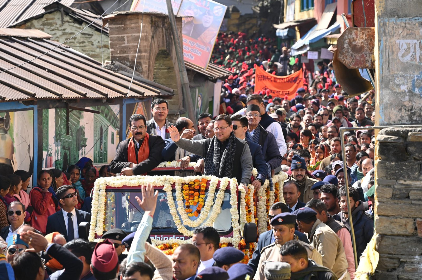 मुख्यमंत्री पुष्कर सिंह धामी शनिवार को मातृ-शक्ति को समर्पित ‘दीदी-भुलि हाथ लगाल, उत्तराखण्ड हौल अमृत काल’ कार्यक्रम में अल्मोड़ा पहुंचे। इस अवसर पर मुख्यमंत्री ने आर्मी हेलीपैड से शिखर होटल अल्मोड़ा तक विशाल रोड शो में प्रतिभाग किया। रोड शो में हज़ारों की संख्या में अल्मोड़ा कि जनता ने पुष्प वर्षा कर मुख्यमंत्री का स्वागत किया।